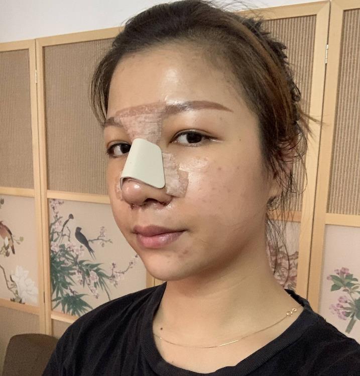 感覺身體狀況還可以,面部狀況也還可以。側(cè)面看得出來和以前不一樣。鼻尖在側(cè)面的高度比以前好很多,就是有一點(diǎn)點(diǎn)血會在我鼻子前面滲出來,被紗布堵住了,不會流出來。今天去醫(yī)院換了藥打消炎,希望能加速鼻子的消腫。醫(yī)生也跟我說了一些注意事項,手術(shù)后開始避免。希望較后的果能讓我好受一些。