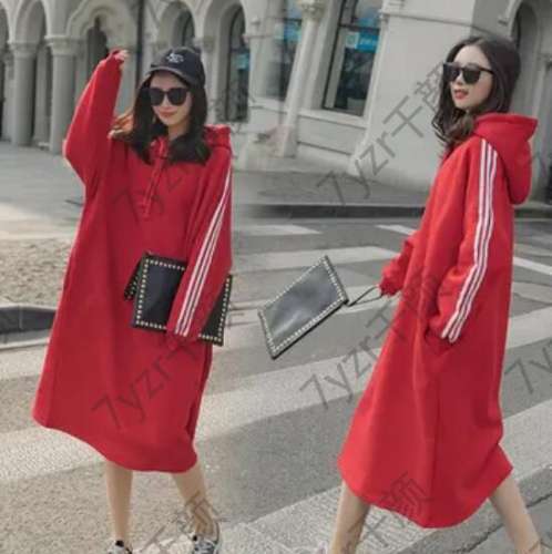 紅色連帽衛(wèi)衣裙,時(shí)尚雅致隨意搭配