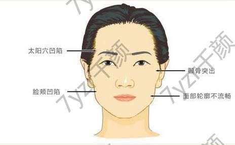 隨著年齡的增大,出現(xiàn)面部骨骼軟組織萎縮,進(jìn)而造成面部凹陷。另外外傷因素,組織彈性下降,松弛下垂也可以導(dǎo)致面部局部出現(xiàn)凹陷,比如太陽(yáng)穴凹陷、顴骨突出、臉頰凹陷、面部輪廓不流暢等。