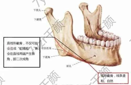 1.切除方法:可切除擴(kuò)大的下頜骨內(nèi)板,可改良肥大的下頜角外翻。求美者的臉型從側(cè)面看有很大改良,適合那些從側(cè)面看要求曲線,而從正面看要求不多的人。這種方法允許病人看到切除的骨頭。